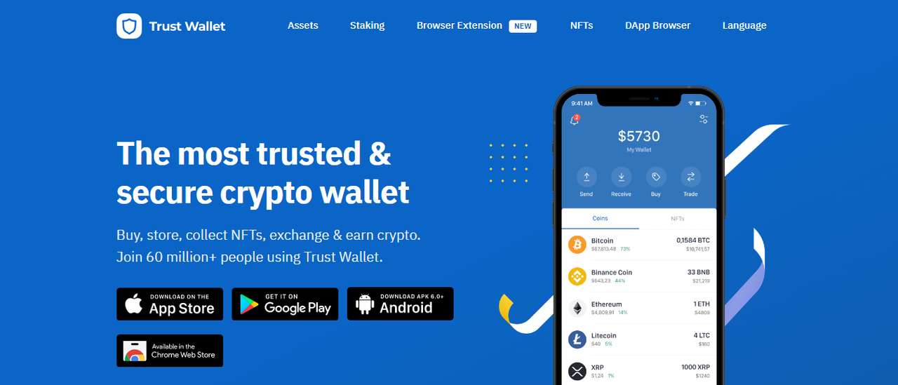 Trust Wallet is a convenient cryptocurrency wallet that allows you to securely store over 10 million different crypto assets. The wallet was created in 2017 by programmer Viktor Radchenko and is available for mobile devices running iOS and Android. Today, Trust Wallet is used by over 25 million people worldwide. It’s user-friendly and reliable, as it operates on open-source software, which helps quickly identify and fix issues.